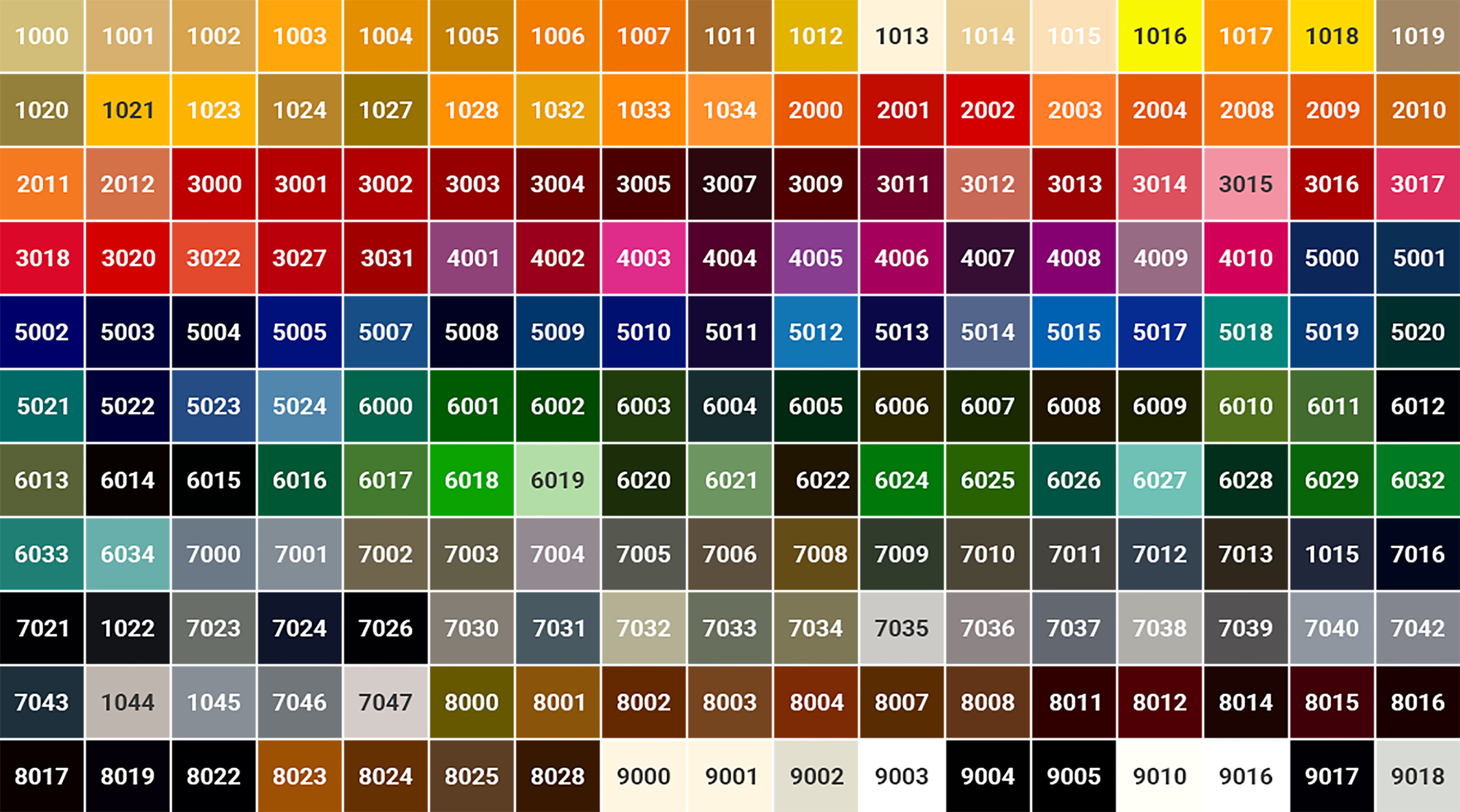 Цвета покраски по RAL